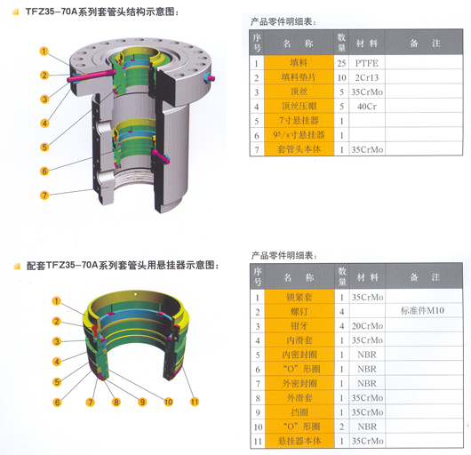 TFZ35-70A系列油氣井套管頭是我公司在國內外油田使用的各類鉆井、采油套管頭基礎上,結合鉆井工藝流程的實際情況,吸收各種套管頭的優點,可簡化安裝程序,進一步提高套管懸掛的安全性、可靠性。